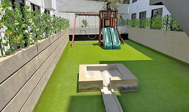 Podrás disfrutar de zonas de paso ajardinadas (combinando naturaleza viva y artificial para mejor mantenimiento y durabilidad) así como espacios abiertos para los más pequeños.